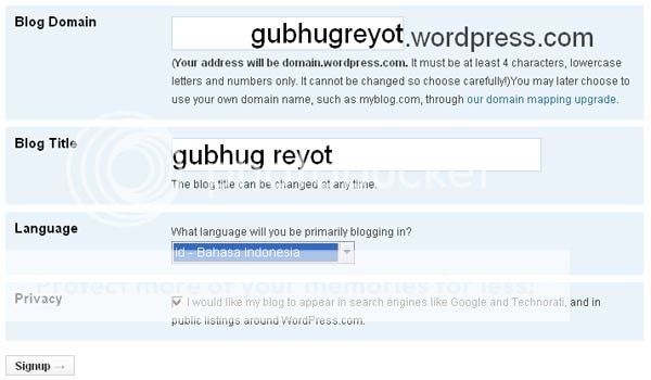 - Wordpress : Datanglah di alamat ini --> http://wordpress.com. Silahkan sampeyan KLIK saja daripada mesti nulis di address bar!